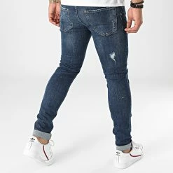 • Jean slim finition tachée, usée et délavée avec rapiéçages