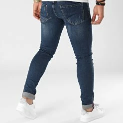 âąÂ Jean slim finition usĂ©e et dĂ©lavĂ©e avec rapiéçages