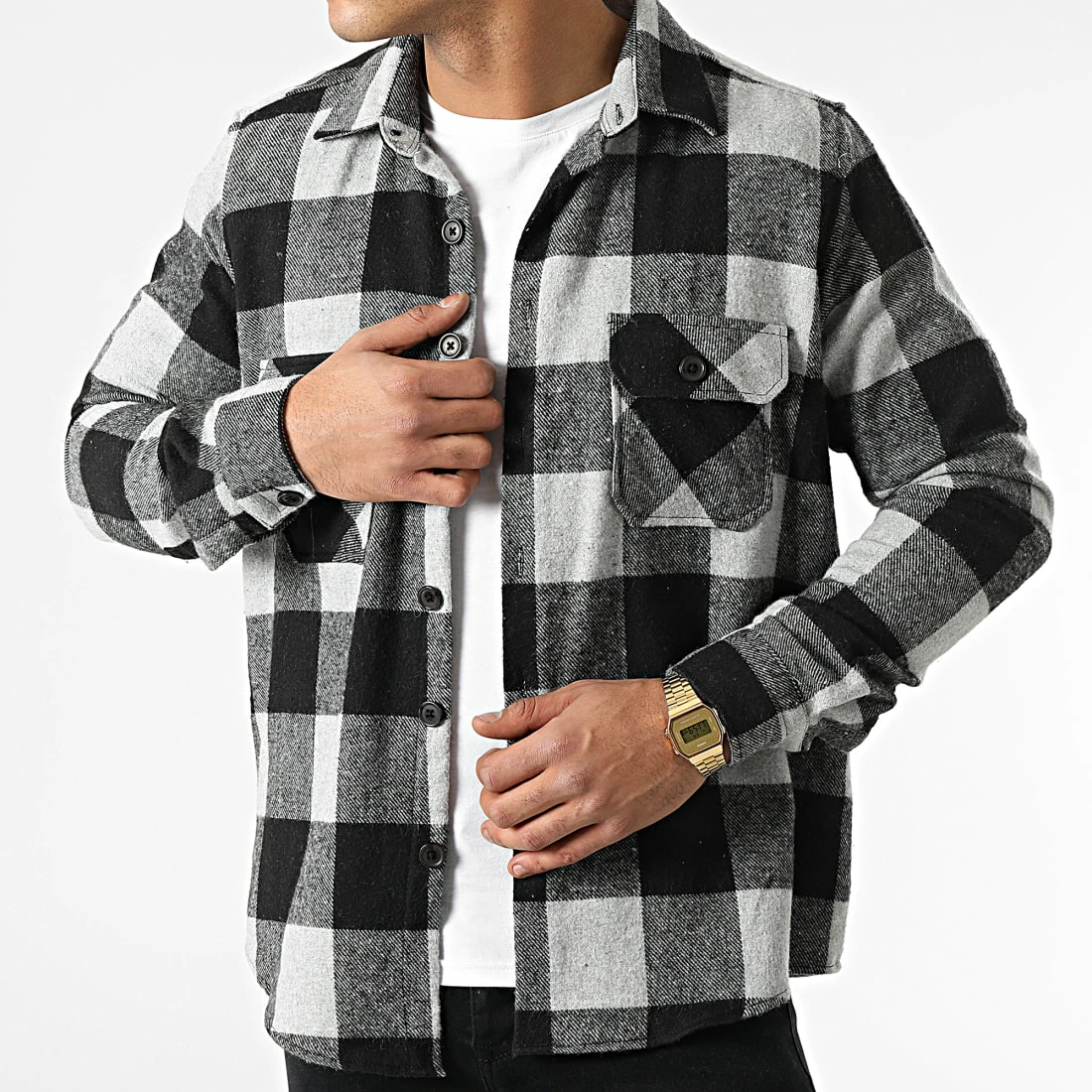 Coupon ✨ Surchemise A Carreaux Pb Chem-01 Gris Noir de Paname Brothers ⭐