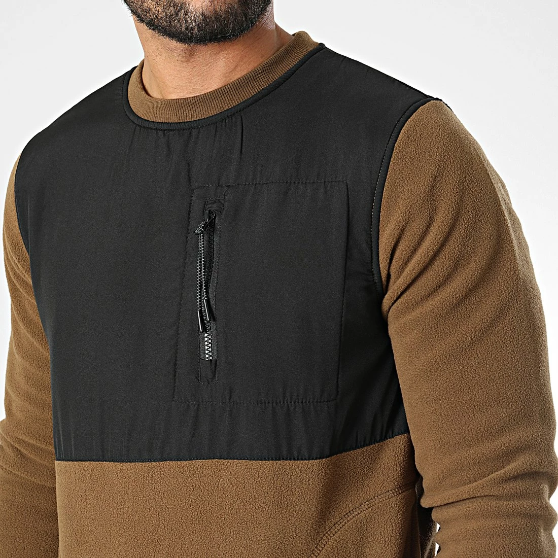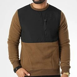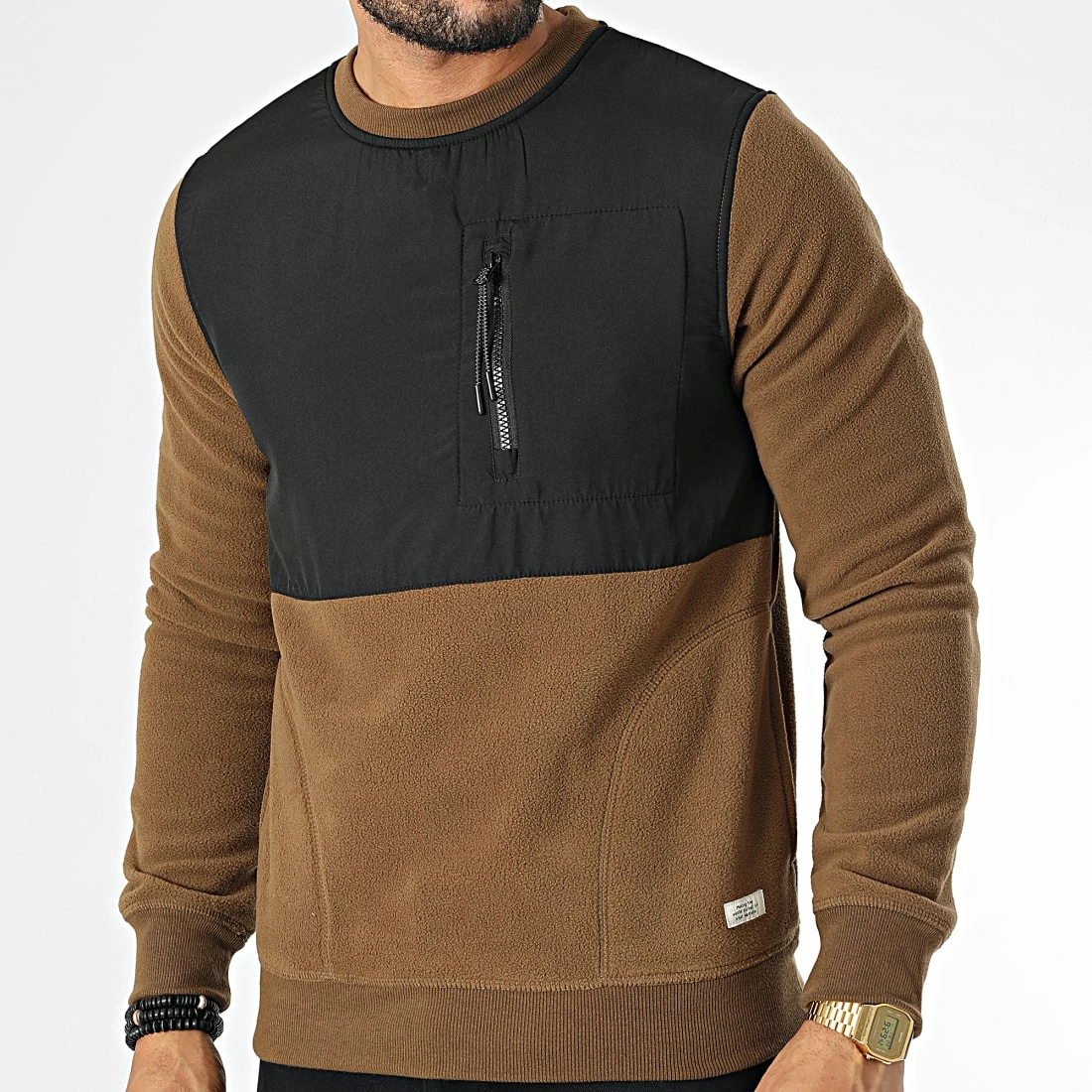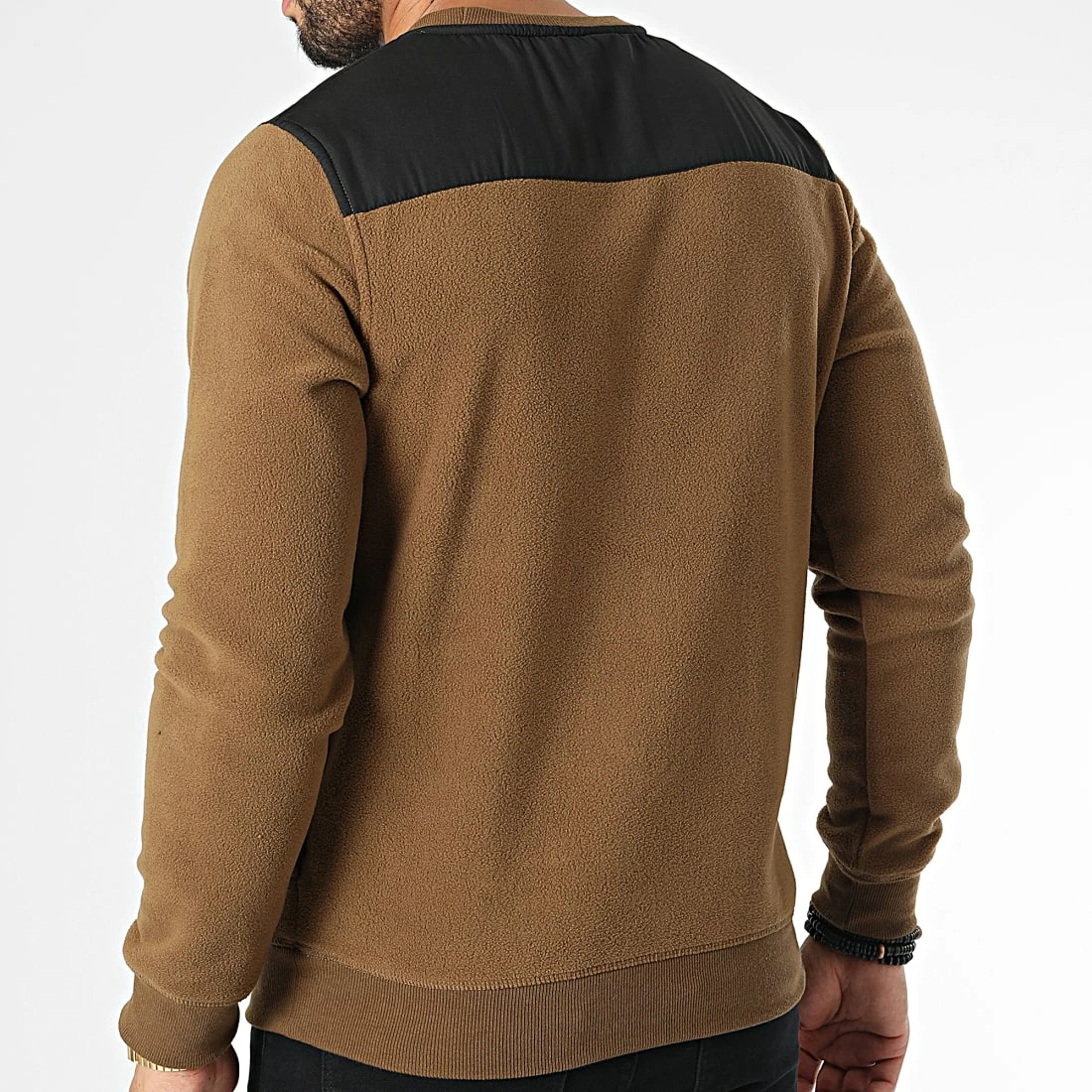 • Sweat crewneck polaire bicolore tendance avec patch brodé à la taille