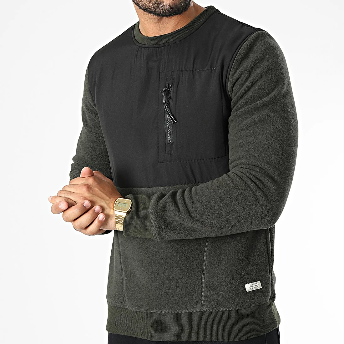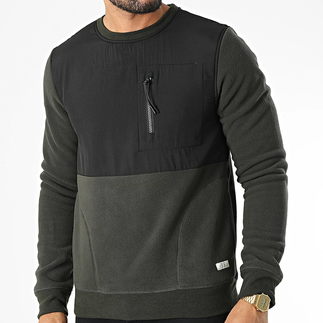 • Sweat crewneck polaire bicolore tendance avec patch brodé à la taille