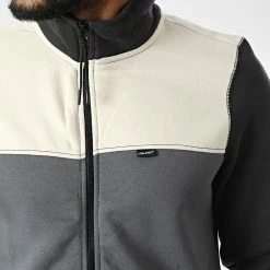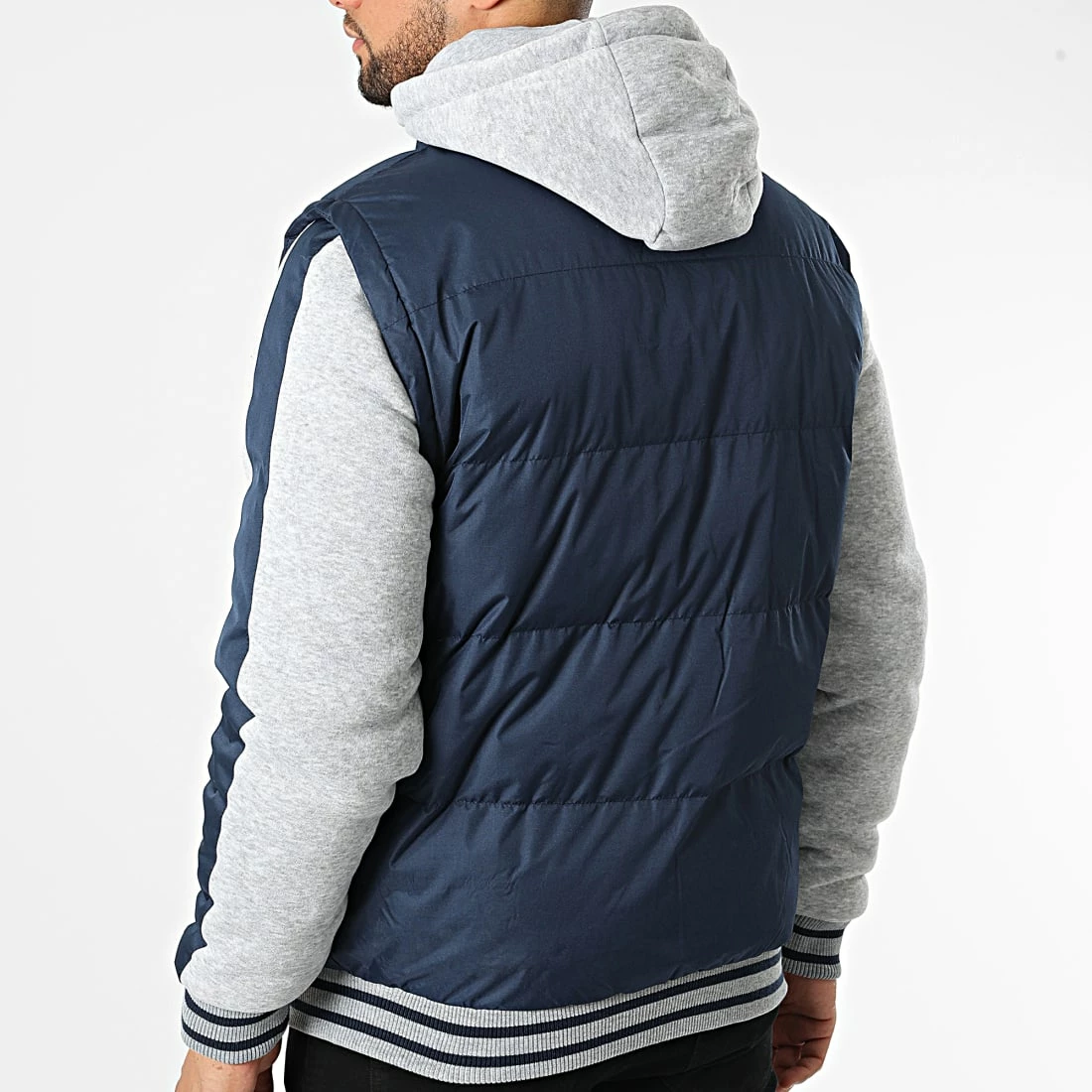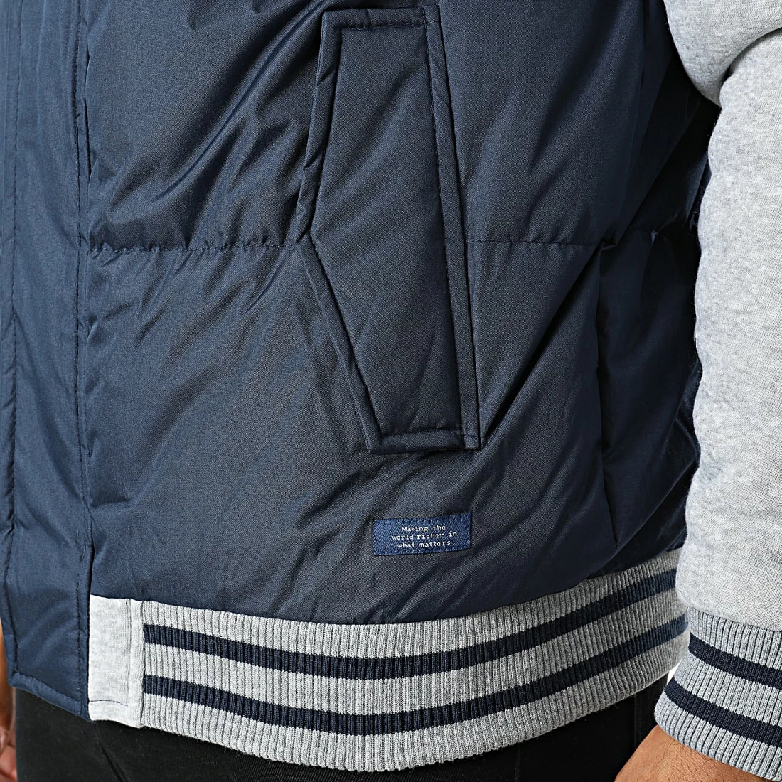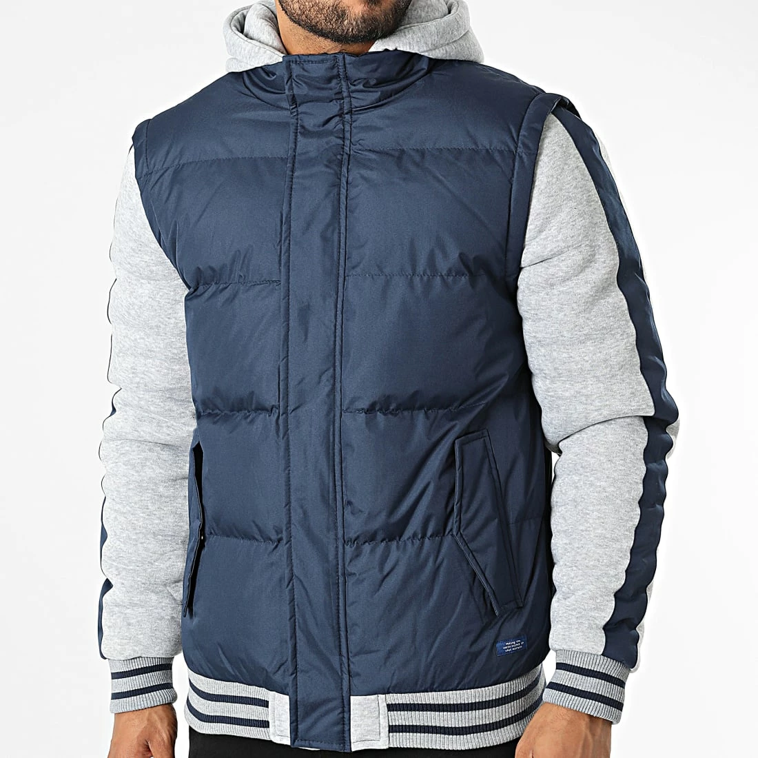 • Veste zippée capuche bi-matière tendance avec patch brodé à la taille
